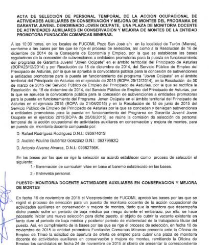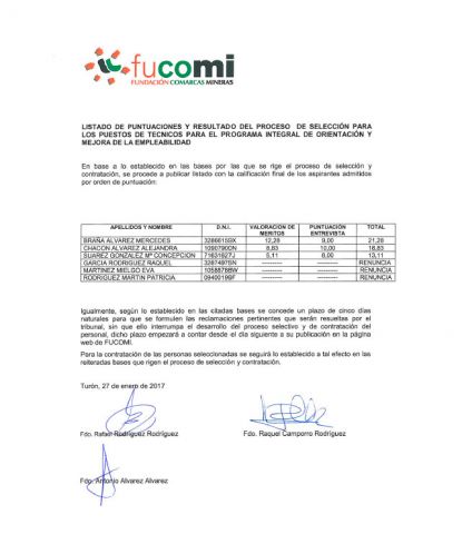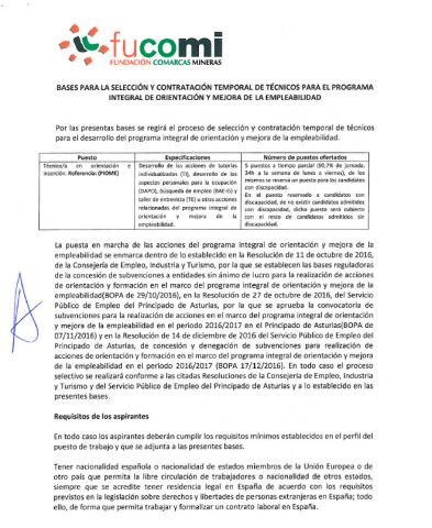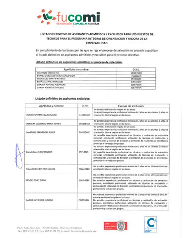 LISTADO PROVISIONAL DE TECNICOS ADMITIDOS Y EXCLUIDOS PARA EL PIOME