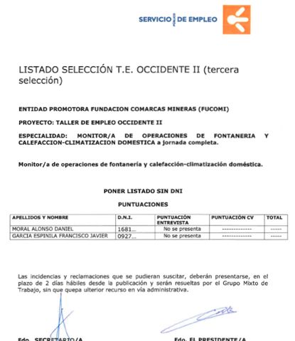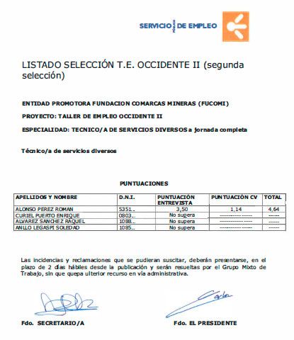 RESULTADO PROCESO SELECCIÓN TECNICO/A SERVICIOS DIVERSOS TE OCCIDENTE II