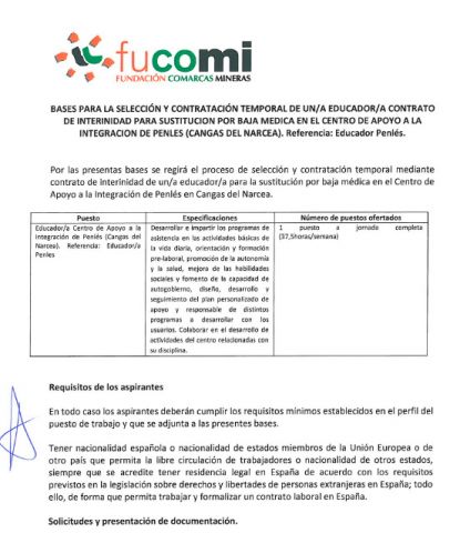 BASES PARA LA SELECCIÓN Y CONTRATACIÓN DE UN EDUCADOR CONTRATO DE INTERINIDAD